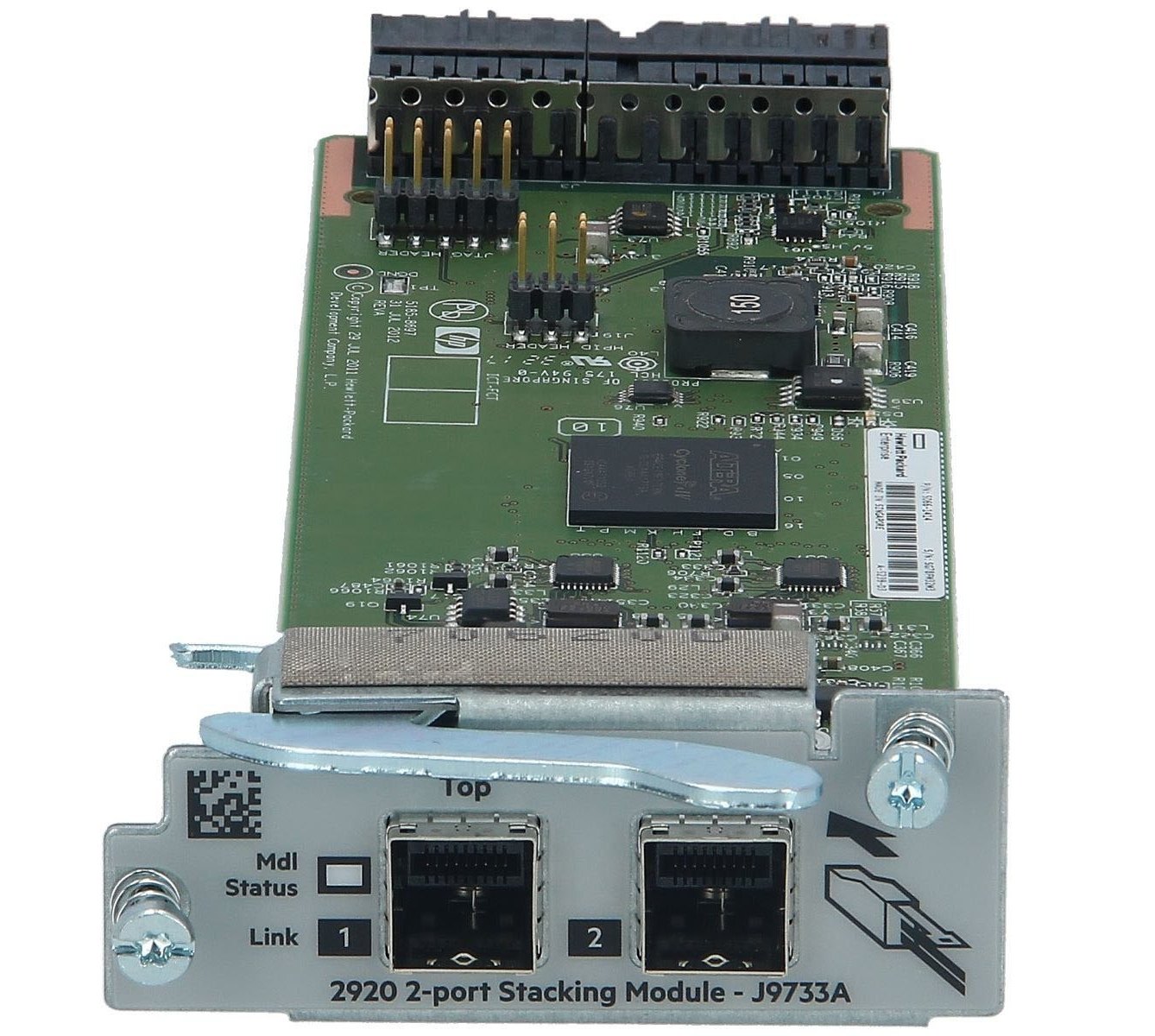 The HP J9733A is a 2-port stacking module designed for the HP 2920 Switch Series. It enables high-speed stacking between switches, allowing up to four 2920 switches to operate as a single logical device for simplified management and increased scalability. This module provides resilient, low-latency stacking connectivity and is ideal for building flexible and redundant network topologies in enterprise campus or branch environments.