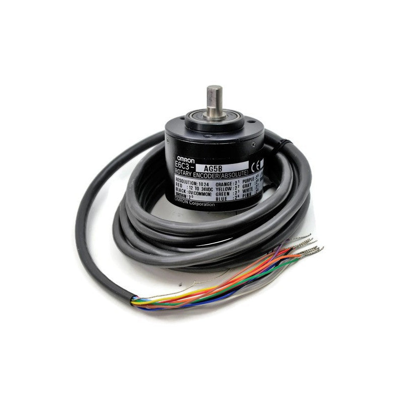 E6C3AG5B720PR1M ROTARY ENCODER ABSOLUTE EXTERNAL DIAMETER: 50 MM PNP OPEN COLLECTOR 720 PR 12 TO 24 VDC OUTPUT CODE: GRAY PRE-WIRED MODEL 1 METER CABLE LENGTH The Omron E6C3-AG5B is a high-precision incremental rotary encoder designed to provide reliable and accurate position and speed feedback for various industrial automation systems. With a resolution of 720 pulses per revolution (PPR), this encoder offers detailed measurement, making it ideal for applications requiring precise motion control. The E6C3-AG5B features a 5V DC power supply and NPN open collector outputs, ensuring compatibility with a wide range of PLCs and control systems. Its robust construction and compact size make it suitable for demanding environments, including those with dust and vibration. The encoder is well-suited for use in machinery, conveyor systems, robotics, and other automated processes where high resolution and durability are essential.
