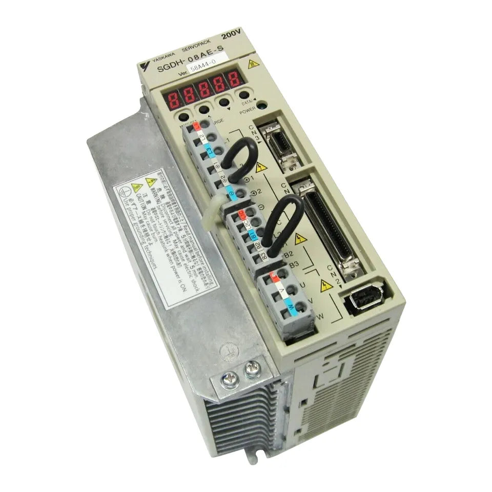 TECHNICAL SPECIFICATIONS: Manufacturer: Yaskawa Model Number: SGDH-08AE-S Series: Sigma II Type: AC Servo Drive Rated Output Power: 750W Input Voltage: 200–230V AC, single-phase Rated Output Current: Approx. 5 A Control Input: Analog voltage and pulse train Compatible Motors: Sigma II series (e.g., SGMAH or SGMGH 750W motors) Feedback Type: Incremental encoder (depending on motor) Mounting: Panel mount Cooling: Built-in fan-cooled Frequency: 50/60 Hz Application: Industrial automation, conveyors, robotics, positioning systems