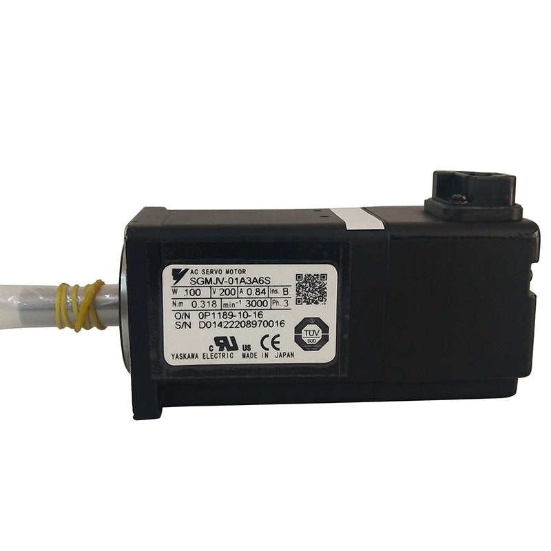 The Yaskawa SGMJV-01A3A6S is a 100W AC servo motor from the Sigma-5 series, engineered for high-precision and fast-response performance in compact applications. This model features a low-inertia rotor, a straight shaft with key, and a 20-bit absolute encoder for accurate feedback. It is well-suited for applications such as pick-and-place systems, robotics, and compact automation machinery.